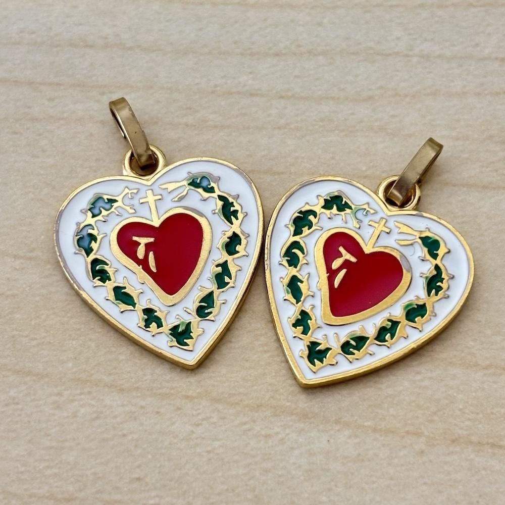 白赤緑のエナメルが可愛らしいハート型のメダイです。