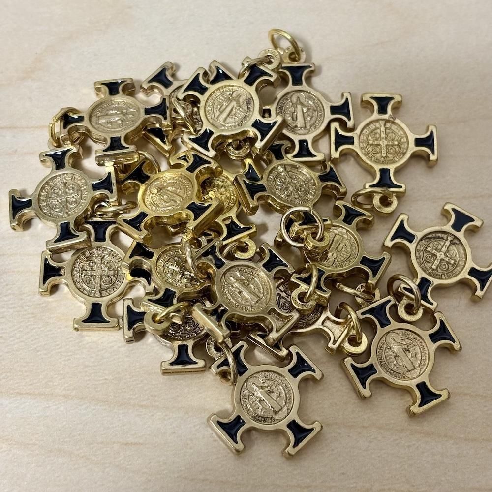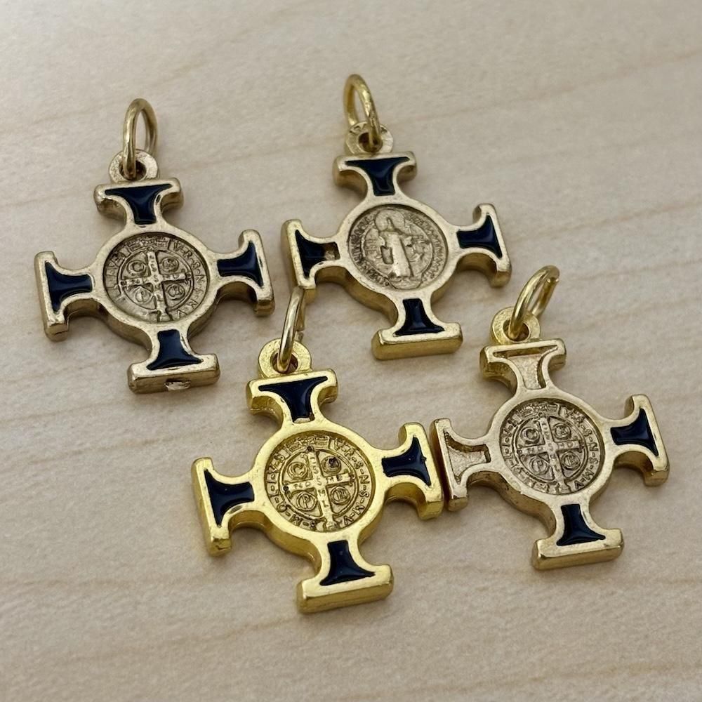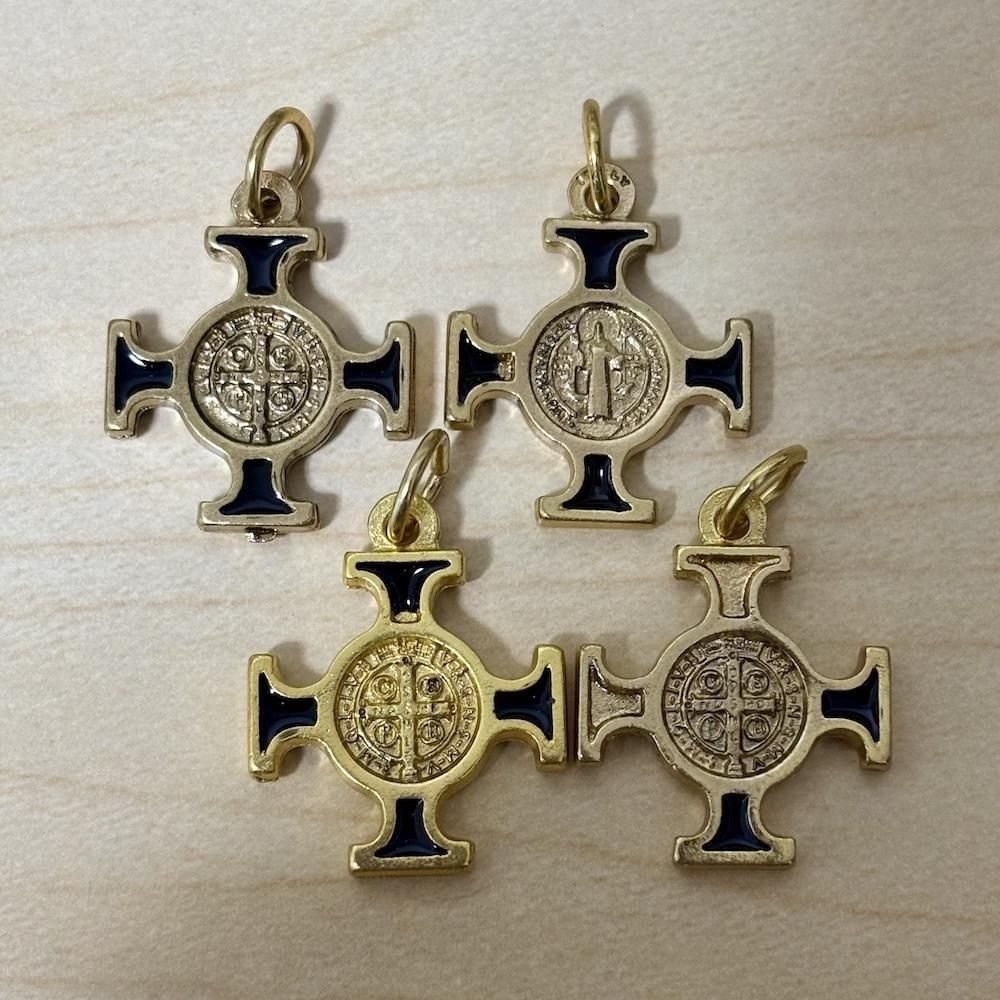 【訳あり】聖ベネディクト ブラックエナメル ゴールド メダイ 十字架型 チャーム イタリア製