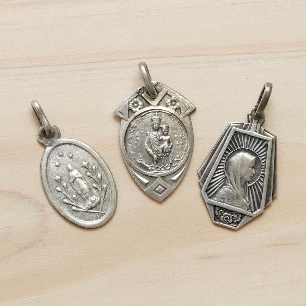 聖母マリア メダイ シルバー ヴィンテージ デッドストック 【海外直輸入中古品】