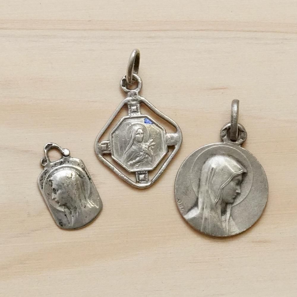 聖母マリア メダイ シルバー ヴィンテージ デッドストック 【海外直輸入中古品】