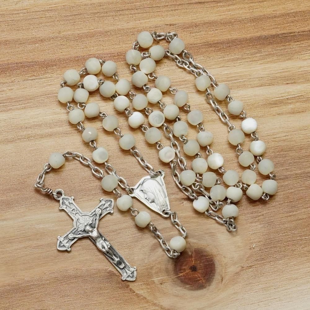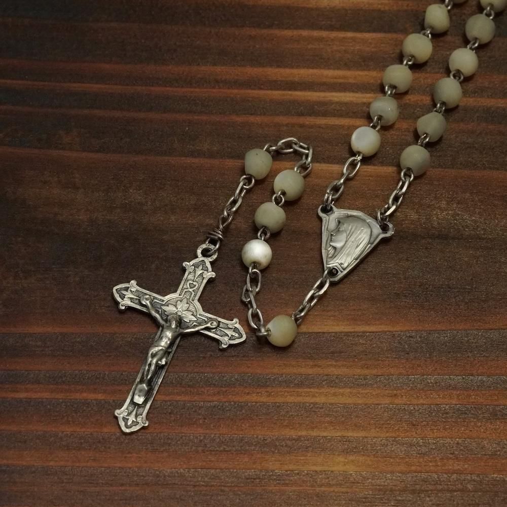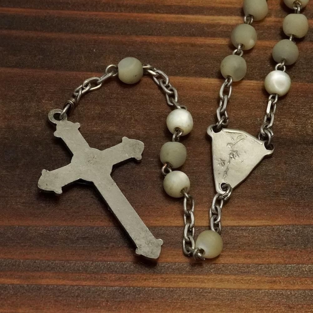 サイズ:十字架 縦約3.75(3.5)cm×横約2.3cm/センターメダイ 縦約1.45(1.45)cm×横約1.35cm/全長 約41.5cm/環部分 約53cm/ビーズ約0.5x0.45cm