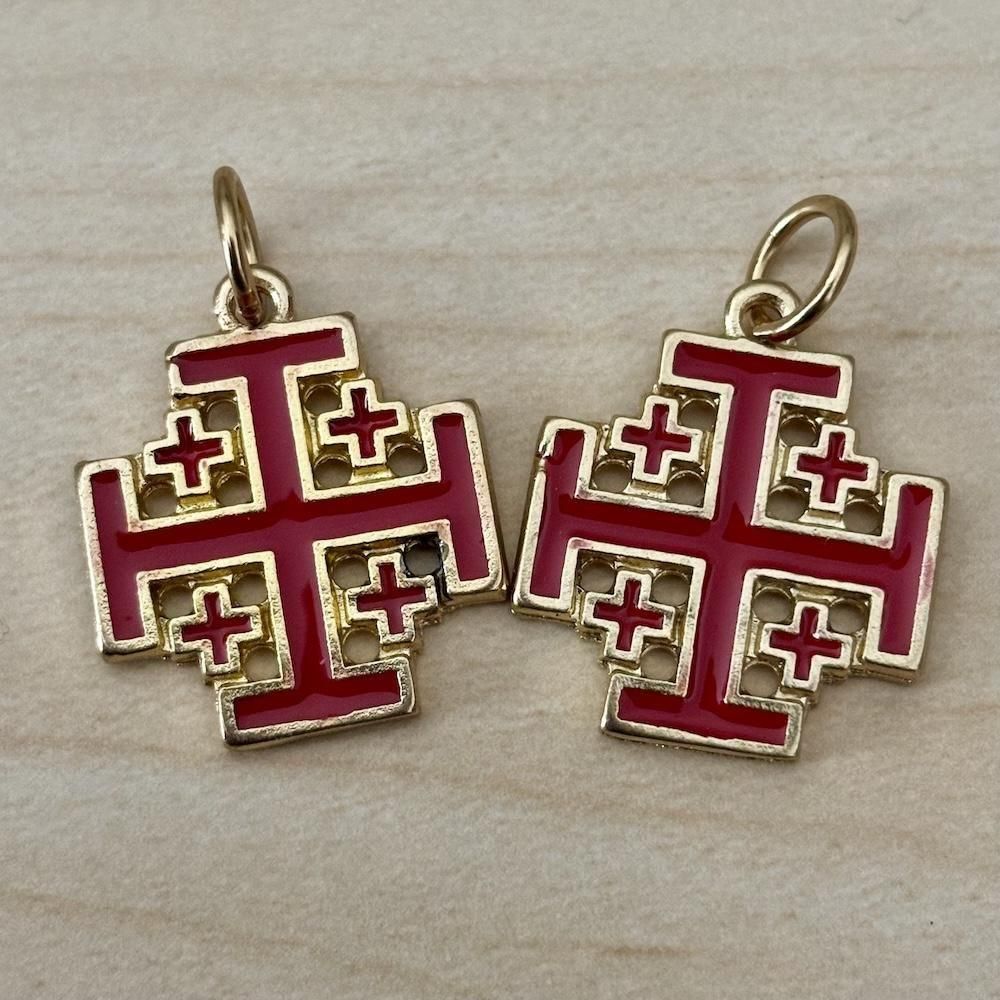 【訳あり】エルサレム クロス レッドエナメル ゴールド 十字架 ペンダント イタリア製